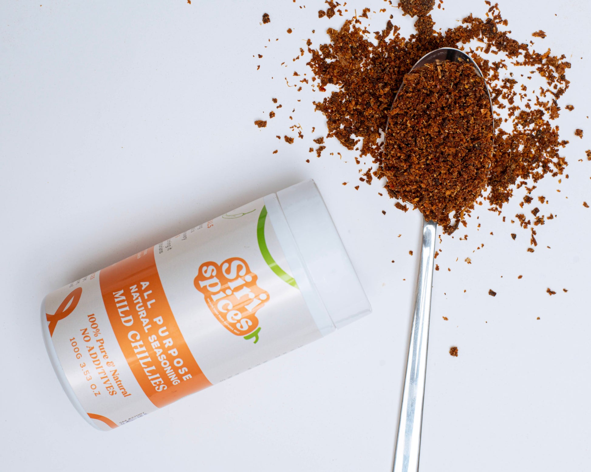 Natural spices containing: 1 % Chillies, Coriander, Ginger, Cinnamon, Garlic, Onion, Cumin seeds, Cardamom, Black Pepper, Table Salt, Cloves, Vegetable oil and Red Pepper